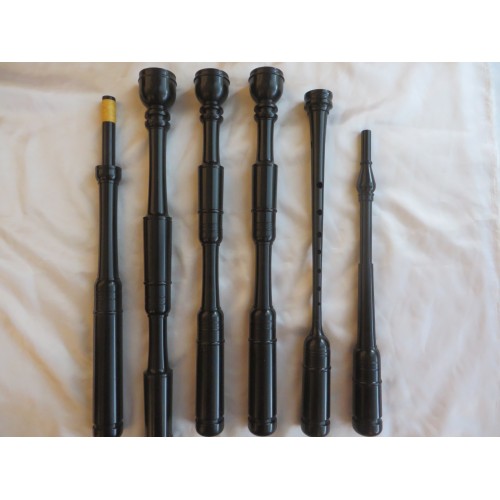 Polypenco - Antique / Chalice Style. Chalice / antique styled tops, comes with poly button mounts and is plain turned (no beading or combing), synthetic bag, cover, cords and synthetic drone reeds, poly pipe chanter.